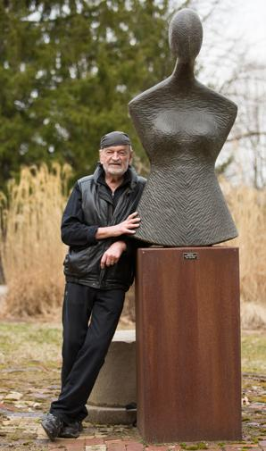Celebrated Ohio artist David Hostetler (1926 – 2015) with one of his iconic bronze sculptures.